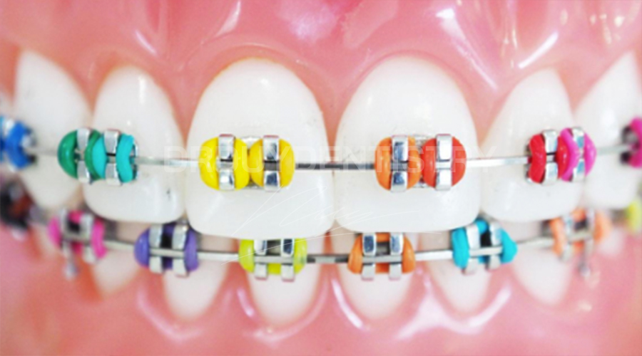 Đối với niềng răng mắc cài, bác sĩ sẽ dán cố định mắc cài lên bề mặt răng, và sử dụng dây cung siêu đàn hồi buộc vào mắc cài để tạo ra lực kéo (pull force) lên mắc cài, qua đó gían tiếp tác động lực lên răng.